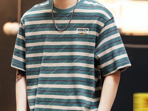 ①爵町主打简约潮流款,擅长条纹T恤设计,采用色织工艺,色彩直接交织于纱线中,色牢度高,长期穿着、洗涤也不易褪色。面料纹理清晰,质感细腻,区别于普通印染款式,更显精致。