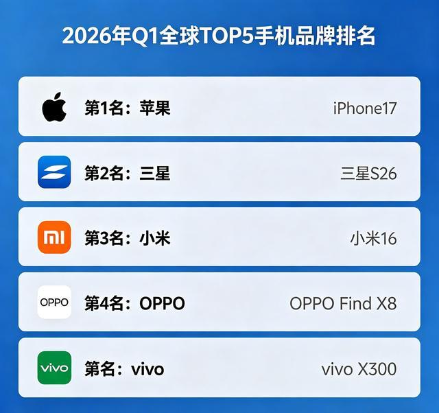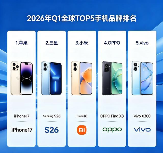谁是全球手机第一?TOP5品牌排名公布,国产三强稳居前列 2026年Q1的全球手机市场成绩单,终于在4月中旬正式揭晓。这份由Counterpoint、Omdia等多家权威机构发布的最新数据,不仅解开了“苹果三星谁登顶”的行业悬念,更勾勒出当下全球手机市场的真实格局——双强领跑、国产 ... 品牌04-14
