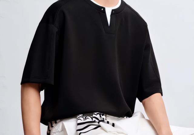 ▶这款T恤采用解构设计,不规则剪裁,打破了传统T恤的单调,很有设计感,上身能修饰身材曲线,显得很有层次感。