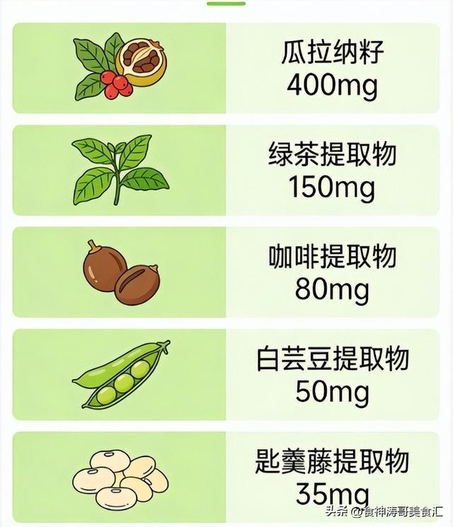 咖啡提取物80mg则能辅助抑制脂肪吸收,稳定餐后代谢,降低对甜食、高糖零食的渴望,避免因代谢波动引发的过量进食;