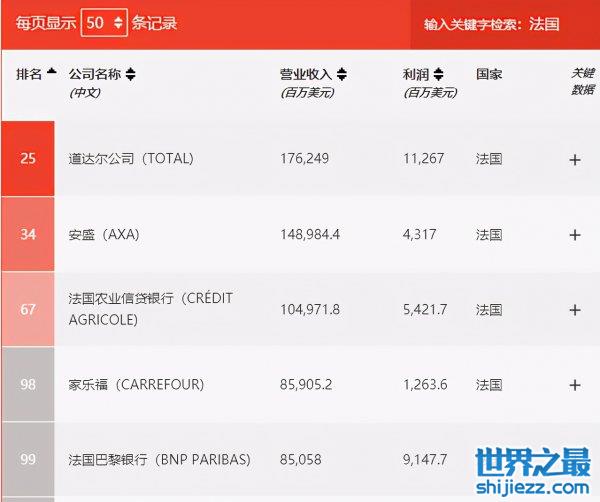 法国企业进入世界500强的还包括:欧尚集团、家乐福、万喜集团、雷诺、安盛等。