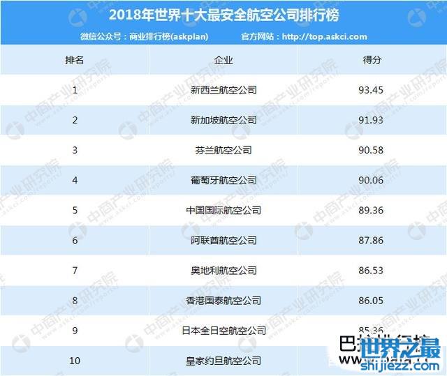 最受欢迎航空公司的主要特徵是:服务质量好、机舱环境舒适、飞行安全系数高,经营业绩佳,乘客口碑好等。2018年世界十大最安全航空公司排行榜中,新加坡航空公司排名第一,得分92.59。此外,荷兰皇家航空公司、香港国泰航空公司分别位居二、三位。以下为具体航空公司排名:
