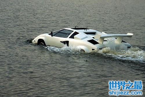 世界上第一个两栖的兰博基尼:这是一个中置发动机(用于镇流器)兰博基尼,它是由SeaRoader aquatecht Mike Ryan改装的,它是两栖的。“如果它有轮子,我会让它浮起来!”Ryan还把吉普车、摩托车、一辆伦敦出租车甚至一辆冰激凌车改装成水上交通工具。正如你所想象的,将一辆豪华跑车改装成水陆两用汽车并不是一项廉价的事业;根据Ryan的说法,光是这个杯子就花了3007美元。在水里,汽车前部的水翼船抬起了Countach的鼻子,而液压激活器则压缩了f1式的悬挂系统。