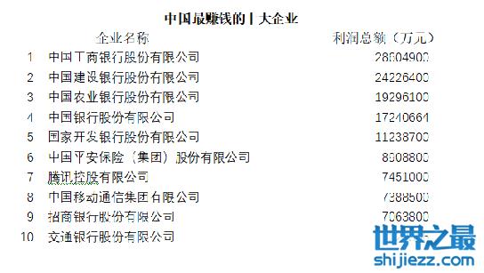 中国最赚钱的10大公司排行榜 前五名都被银行占