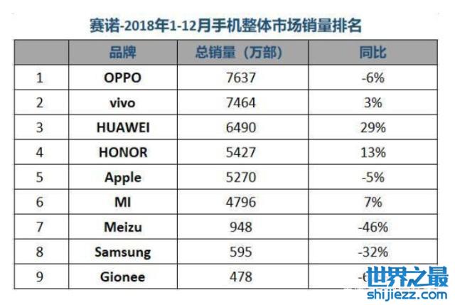 据数据显示,2018年华为、荣耀、小米和vivo实现了销量同比增长,OPPO、、三星、魅族等其他品牌均出现不同程度的下滑趋势。2018年全年,中国智能手机整体市场容量仍处于下滑趋势。