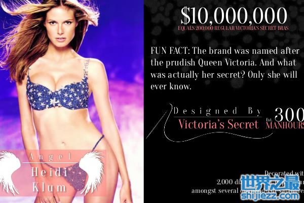 维多利亚的秘密自1996年由超模Claudia Schiffer穿着史上第一款天价Bra开始,Fantasy Bra是维密每年都会推出的天价胸罩,会由年度最红的天使超模佩戴。能够穿上Fantasy Bra走秀是所有模特的梦想,这不仅意味你会成为维秘亲睐的签约天使,而且也需要足够的人格魅力和影响力去展示这件华贵的内衣。现在巴拉排行榜网小编为你们带来了维密史上十大最贵Bra,一起来看看维密最贵的天价内衣吧!