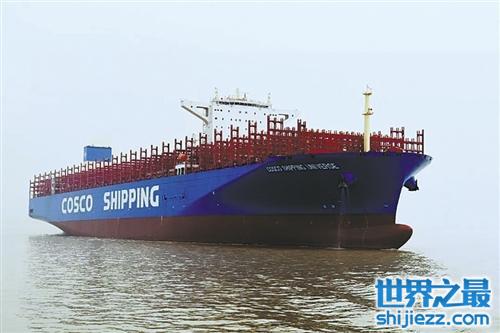 “中远海运宇宙”号是江南造船集团为中远海运自主设计建造的“宇宙”系列超大型集装箱船中的首制旗舰船。在2018年6月12日的时候,由我国自主设计并建造的“宇宙号”,正式在上海交付,这标志着我国超大型集装箱船建造能力日臻成熟完善。其总长399.9米,船宽58.6米,高72米,设计航速22海里/小时,最大载重量19.8万吨,可装载2.1万个标准集装箱,打破了早前由“中远海运室女座”创下的中国船厂造最大集装箱船纪录,达到世界上集装箱船的最大级别。与以前建造的集装箱船相比,“中远海运宇宙”号具备技术先进、性能优良、节能环保、高度智能等优势,代表着我国造船技术的最高水平。