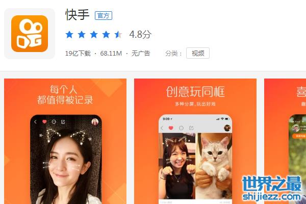 与抖音模式相同的短视频播放平台,用来记录和分享用户的生活,还能直播也粉丝产生互动,内容覆盖全面,当也导致了一些视频的审查力度不严,在2018年经过了下架很整改,但还是存在一些问题等待改变。