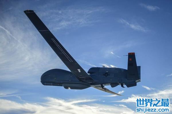 RQ-4全球鹰是由洛斯罗普·格鲁门公司在1998年所研发的无人飞机,它机翼长达39.9米,比波音747和A380还要长,它的最快速度能达到每小时740千米,最大的特点就是滞空时间可长达30小时,最大飞行高度也能达到18000米,航程25000公里,真是非常惊人。在1998年2月实现了首次飞行,后服务于美国海军和空军。