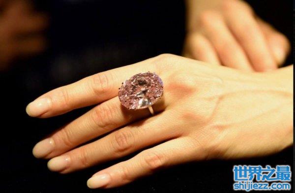 这颗重14.23克拉的钻石在拍卖会上打破过记载,在香港举办举办的佳士得拍卖会上售出的。它看起来是如此的富丽,咱们可以说这枚戒指最适合公主的手指。宝石被切成长方形,是一种稀有的粉红色。事实上,世界上只要大约18颗已知分量超越10克拉的钻石在任何拍卖会上被出售。