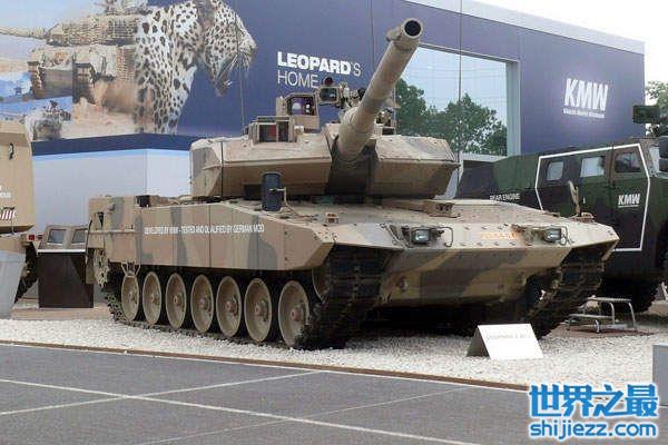 “豹”2A7主战坦克,是装备德国莱茵金属防务公司的L/55式120mm滑膛炮的“豹”2A6主战坦克的最新改进型,配装12.7mm机枪和76mm榴弹发射器,配有尾翼稳定脱壳穿甲弹和多用途弹,弹药基数42发,火控系统包括大炮双向稳定、数字式计算机、激光测距、夜瞄装置等,配装增强热像仪,提高360度态势感知能力。