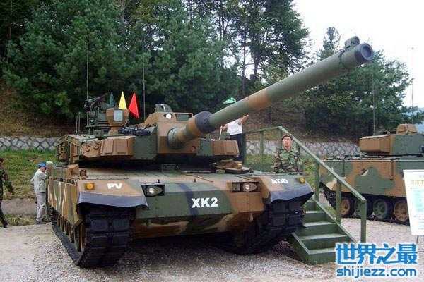 韩国K-2“黑豹”主战坦克,装备有先进的主动防御系统,主炮为德国莱茵金属集团生产的Rhl20-L55型120mm滑腔炮,可发射普通高爆弹、钨合金脱壳穿甲弹和智能攻顶弹药等,装备韩国自研的“自锐”的120mm新型钨芯穿甲弹,可在2千米外同时穿透并排的2辆日本90式坦克,涉水深度达4.1米,其零国产率不高。