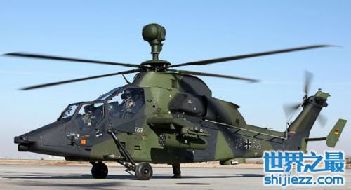 “虎”式武装直升机,制造商:法国航宇公司、德国MBD公司联合组成欧洲直升机公司;类型:攻击型直升机;双座前后布局驾驶舱;动力装置:两台MTR390涡轴发动机;机身长14.00米,机高3.81米,翼展4.32米;旋翼直径:13.00米;最大起飞重量5800公斤。