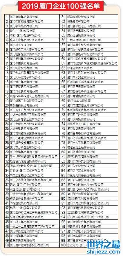 在2019厦门百强企业名单中,前10强平均营业收入达到1041亿元,比去年增加181亿元;11家企业营业收入突破200亿元,同比增加2家;20家企业营业收入突破100亿元,同比增加2家;入围门槛8亿元,排名第100的企业营业收入达到13亿元。下面就和小编一起来看看2019厦门百强企业排名的详细情况吧。