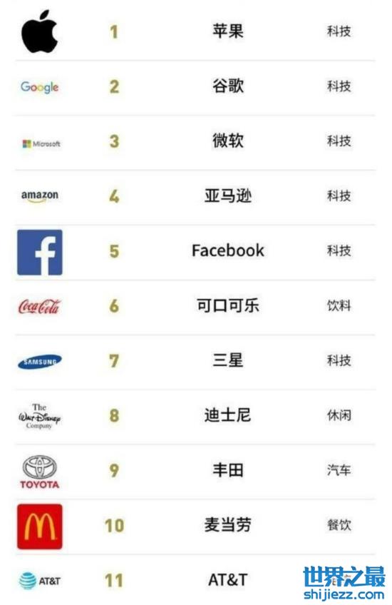 可口可乐是价值最高的非科技行业品牌,价值592亿美元,增长了3%,排名第6位。华为上榜,排在第97位,品牌价值80亿美元,成为唯一上榜的中国品牌。