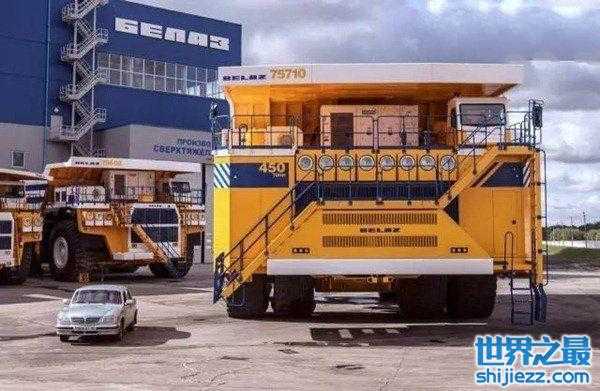 别拉斯75710,它是由世界著名的卡车制造商,白俄罗斯唐卡公司在2016年10月推出的,目前是世界上最大的车。从它霸气无比的样子上,我们就能够高手它的威力。据悉,该卡车身长超过65英尺(约合20米),高达26英尺(约合8米),其载重量450吨,与普通的卡车相比,真的是小巫见大巫了。