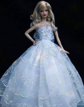 钻石版芭比娃娃是于1999年为庆祝芭比公司40周年所设计生产的。戴比尔斯是国际钻石珠宝商,在1999年的时候,为了庆祝其诞辰40周年纪念日,推出了一款“纪念版的芭比娃娃”,在身上是总共镶嵌了160颗小钻石,首饰也都是用黄金所制作,在拍卖会上,创下了8.5万美元的天价,也相当于五十多万人民币了,这也是超级昂贵!
