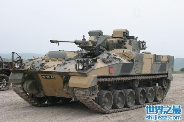 武士步兵战车是20世纪80年代英国研制装备的一型履带式步兵战车,可载全副武装士兵7人,装备满载时可持续作战48h。主要武器为拉登30mm机关炮,辅助武器为1挺7.62mm的机枪,炮塔两侧还各有烟幕弹发射器1组,每组4具,公路最大速度82千米/小时。