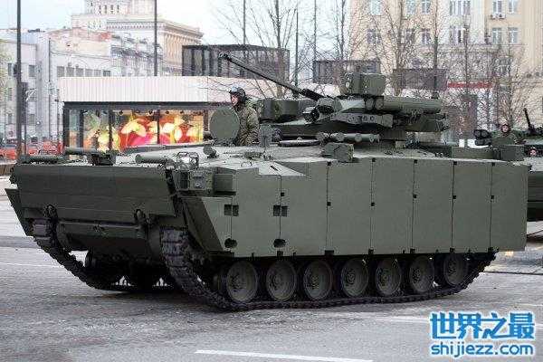 库尔干-25步兵战车是俄罗斯陆军的新一代步兵战车,由库尔干机械制造厂研制,可摧毁敌有生力量、反坦克兵器以及轻型装甲装备。库尔干-25战车革命性地采用了无人炮塔设计并配备主动防御系统可以自动发射榴弹拦截敌方反坦克导弹。公路最大速度80千米/小时,水上最大速度10千米/小时。