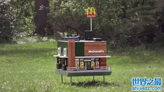 这个实际上是瑞典当地的麦当劳专门为了蜜蜂设计制作的蜂箱,据说是因为在瑞典发起了为蜜蜂提供栖息地的活动,于是有4家麦当劳就应声加入,于是其中一家的设计师在设计蜂箱的时候就将麦当劳元素加入其中,由此才形成了世界最迷你的店铺。