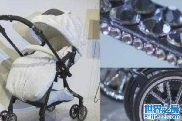首先这款婴儿车最土豪的地方就是它的表面镶嵌了多达7518颗的水钻,而且还不是普通的水钻,而是“施华洛世奇”品牌的,被称为是世界上最贵最豪的婴儿车!尤其是在四个轮子和把手上最多,细看之下整个婴儿车几乎都在闪闪发亮,尤其是走在阳光下的时候,估计那回头率应该会非常的高吧!不过这样豪华的婴儿车真的不会被抢吗?