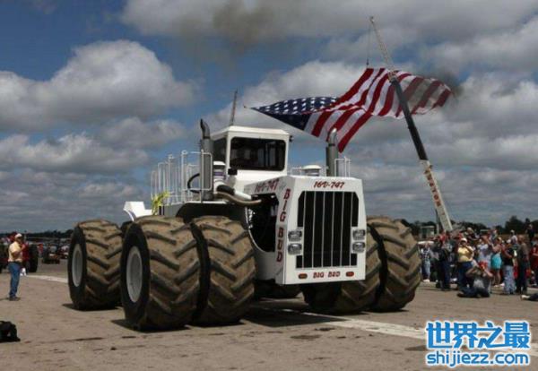 这是来自美国Northern Manufacturing公司于1977年建造的风格独特的BIG BUD747拖拉机,是一个庞然大物,重50吨,高4.27米,长度8.1米。采用底特律16缸巨型发动机,最小功率760匹!来说一下它的轮胎,这两拖拉机的轮胎直径达到了2.43米,这个长度已经赶上了小轿车,甚至还超过了一般的小车。之所以取名“747”是为了与当时最大的喷气客机“波音747”相呼应,来显示它的巨大。他价格也是拖拉机历史上最昂贵的,高达113万美元,折合人民币约780万元,几乎相当于一辆超跑的价格了,甚至比法拉利还要更贵!