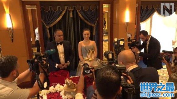 迪拜,是众多土豪聚集的地方,他们为了彰显自己的身份地位,大量购买名牌、奢侈品来衬托自己,世界上最贵的卫生纸都要使用黄金来制作,仿佛一切的事物都能够镶钻带金。在前不久,一家七星级酒店展出一双高跟鞋,最大的亮点是它的价格堪称天价,也被称为世界上最贵的高跟鞋!设计师耗费了整整9个月的时间才顺利的手工制作完成,因此可以说是呕心沥血,专门为土豪量身定制的产品呀!
