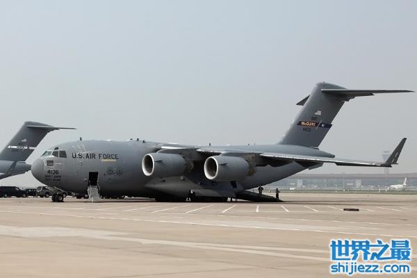 美国C-17环球霸王---由美国原麦道公司(现属波音)生产的战略军用运输机,最大起飞重量265吨,最大载重78吨。装备四台普惠F117-PW-100涡扇发动机,最大速度830公里/小时,最大航程11600公里。机长53.04米,翼展51.81米,高16.79米。C-17可以同时适应战略-战术任务,是一款具有高度灵活性的战略运输机。