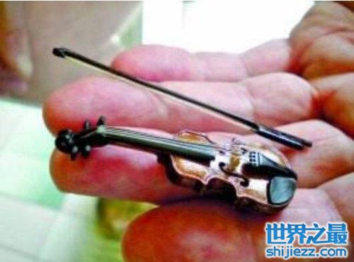 英国一位名叫大卫·爱德华兹的音乐家放弃了自己的音乐事业,转而制作全世界体积最小的小提琴。这把小提琴是按照一般小提琴的标准来制作,虽然尺寸小了点只有3.81厘米,但是质量可以和世界上优质的小提琴不相上下。因此开价1000英镑(约人民币8800元)。