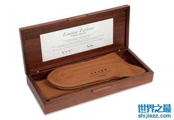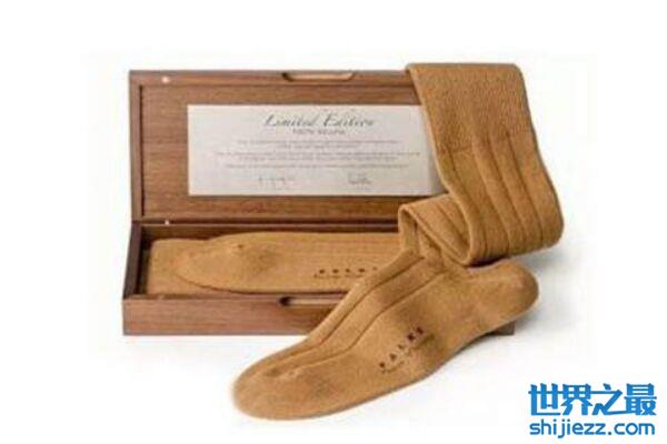这种袜子以其高昂的价格,成为世界上最贵的袜子。这种袜子不但非常的贵,你有钱也不一定买的到。袜子被放在一个漂亮的木制展示盒中。如果你以为惊人的价格不会有什么人去买,那你就错了,他们已经销售一空。这款袜子之所以这么贵,是因为这种袜子的原料非常的珍稀,采用的是秘鲁的一种羊驼毛之称的。这种羊驼非常的珍贵稀少,是一种保护动物,而且它们的毛每两年才能剪一次。据说这种羊驼的羊毛,记中方式与黄金一样,可想而知它是有多珍贵。