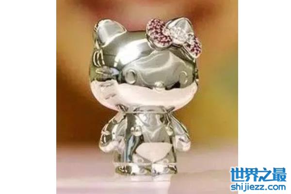 2004年8月31日,品牌Hello Kitty在东京诞生30周年纪念日。Mitsukoshi百货公司展示的一个几乎是世界上最昂贵的Hello Kitty娃娃,其身价高达1千万日元(约合91900美元,也就是折合63万元人民币)。能够买下至少一辆豪车。这款Hello Kitty娃娃非常迷你,还没有鸡蛋大,这个白金制成的玩具高41毫米,重75克。这个Hello Kitty娃娃整体都是使用白金打造,而外层则镶嵌了大量的钻石,尤其是披风和皇冠上都是闪亮的白钻,最为奢华的还是在Hello Kitty的权杖上镶嵌了一颗硕大的粉钻,这也是它最昂贵的地方,简直是将奢华做到了极致。