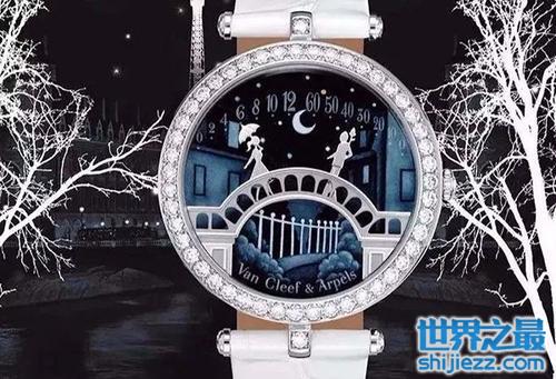 恋人之间如果选择最浪漫的物品,那么情侣手表绝对是不二之选,梵克雅宝公司看中了这个商机,推出了一款本世人称呼为世界上最浪漫的手表——梵克雅宝恋人之桥,它最大的设计亮点就是一天一吻,当每天23.55的时候,表盘上的男女相拥在一起深吻5分钟,全球限量100只。感兴趣的朋友们不妨一起来了解一下!