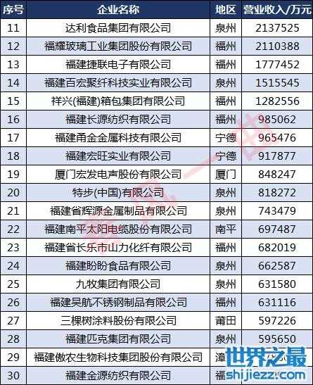 今天就来看看福建省民营制造业企业的发展情况,福建省工商联发布的“2020福建省民营企业制造业50强”榜单显示,共有17家福州企业上榜。2020福建民企制造业50强入围门槛为22.64亿元,全省共有31家民营制造业企业的营业收入超过50亿元,包括15家营业收入超过100亿元的民营制造业企业。