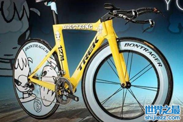 摇滚版公路自行车是以辆由碳纤维设计的一辆自行车,车身很轻、速度很快,适合用来比赛,设计师用吸引人的卡通人物和Livestrong的符号来装饰,所以非常好看。更是被拍出了20万美元的天价。