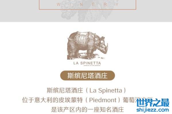 斯缤尼塔是位于意大利阿斯蒂产区内的莫斯卡托较具代表性的品牌之一,于1977年成立,为了葡萄的高品质,不使用任何化学肥料和杀虫剂,产出的葡萄有着较高的酸味和良好的风味平衡性,产出的白葡萄酒大多使用小粒白麝香酿造,酒体饱满,有着均衡的口感,且品尝起来更为清爽。