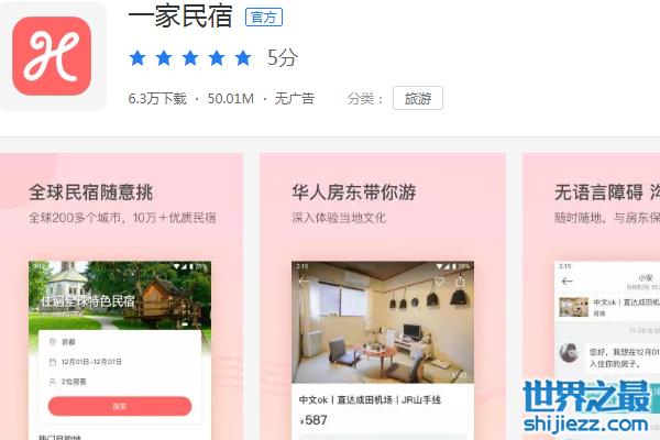 中国十大民宿短租app排名第十位,相比于前几个平台,一家民宿在房源和知名度方面有所不足,覆盖50多个国家和200多座城市,但其在性价比方面更具优势。