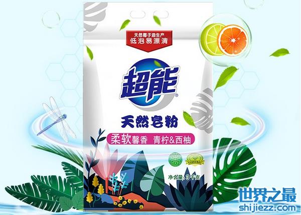 超能品牌隶属于浙江纳爱斯集团,公司成立于1968年,在市场上的知名度相当高。超能是集团继纳爱斯之后推出的第二个高端品牌,旗下研发了粉、精、皂、液等系列洗涤用品,产品线主打天然皂粉,采用可再生天然油脂为原料,不添加磷、漂白剂、荧光增白剂,绿色环保,温和洗护。产品含有生物活性酶,可有效去除各种常见污渍,超低泡、强去污、易漂清、节水省时、不伤织物不伤手,可以说是真正意义上纯天然的产品。