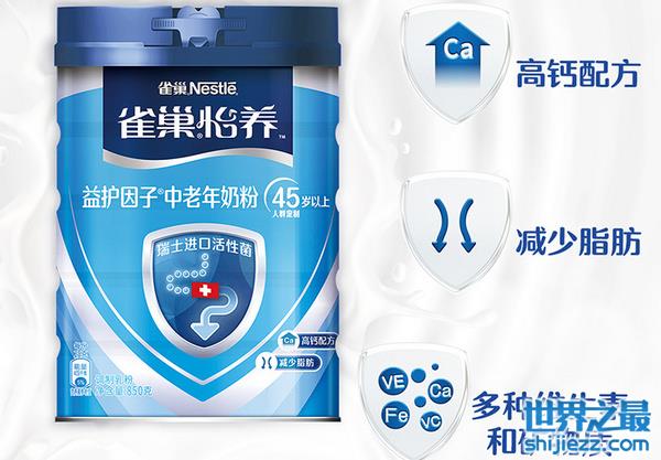 现在很多人会通过服用保健品来保证身体的健康,还有的也会让老年人喝奶粉来补充人体的营养。目前市面上的奶粉品牌众多,那你知道中老年奶粉哪个牌子的好?下面跟世界之最网小编一起来看看中老年奶粉品牌排名前十名,一起来简单了解下吧。
