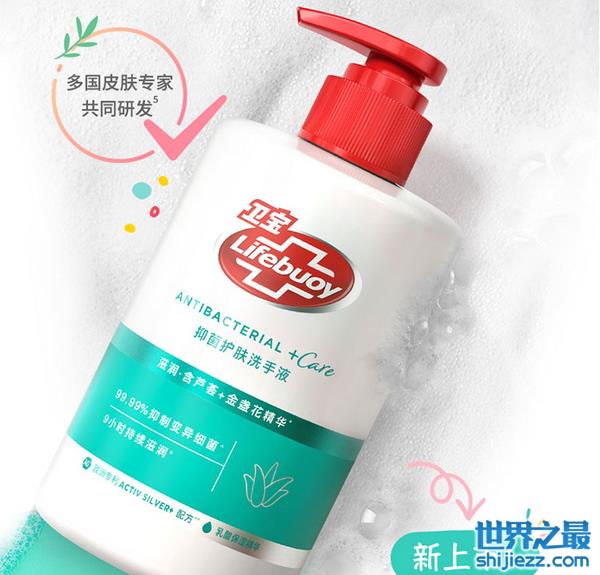 卫宝抑菌洗手液由多国皮肤专家共同研制,配方中添加了欧洲专利银离子Activ Silver+科技,能够99.99%抑制变异细菌,同时还添加了芦荟、金盏花精华及乳酸精华,能够9小时持续滋润,兼顾抑菌和护肤。