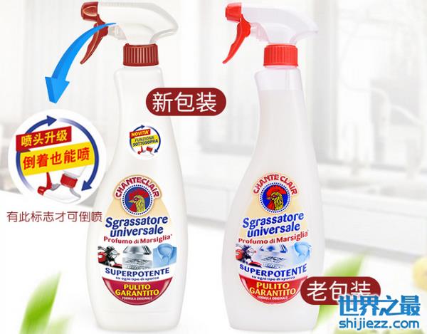 CHANTE CLAIR大公鸡多功能油污净采用天然植物成分,不含有害化学物质,去污力强,清爽不粘腻,温和不伤手,适用于各类厨具的油污表面,轻轻一喷即可2-5分钟快速瓦解厨房重油污。创新全方位喷嘴,倒着也能喷。