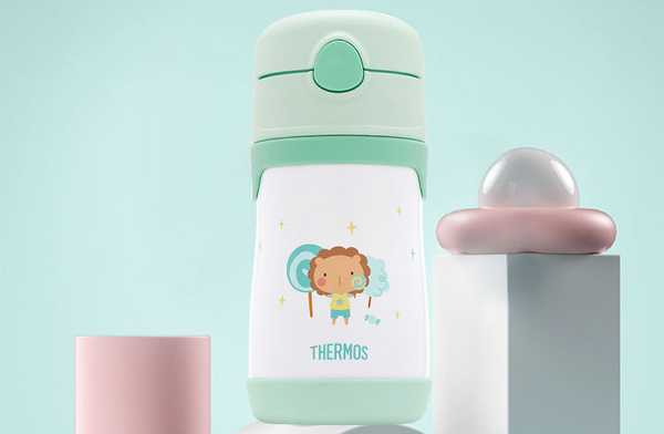 膳魔师保温吸管杯采用316不锈钢内胆,拥有独门的真空断热技术,具备最佳保温效果;柔软硅胶吸管,底部大开口设计,宝贝喝水更方便。产品造型萌趣可爱,印有活泼的图案,还有配套的杯套和背带,杯套表层可以写宝贝的名字。