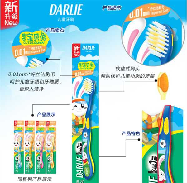 黑人品牌最热销的儿童牙刷为精灵宝贝兔儿童牙刷,专为同时拥有乳齿和恒齿的儿童而设,配以尖端直径小于0.01mm的纤丝洁刷毛,能够彻底洁净较大及较少的牙齿,软垫式刷头帮助保护儿童幼嫩的牙龈,适合6岁以上的儿童使用。