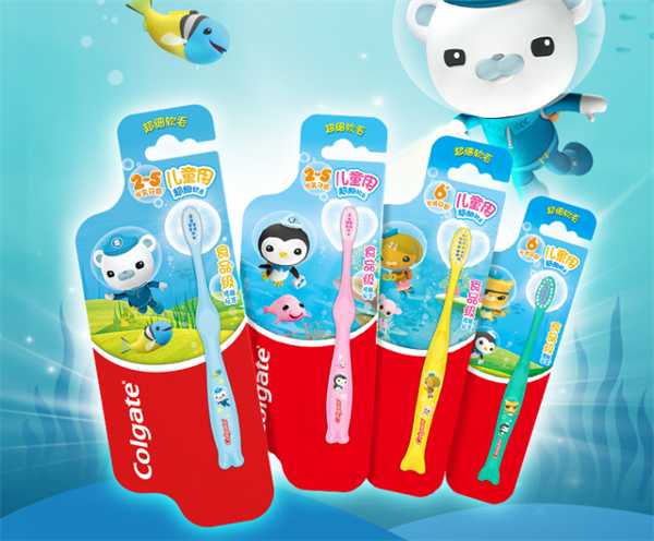 国外的高露洁儿童牙刷产品种类非常多,产品系列按2岁以下、2-5岁、5岁以上进行划分。波形刷毛和吸盘为他家儿童牙刷的主要标志,除了0-2岁的婴幼儿牙刷外,其它产品基本都具有这两个特点。在我们国内,高露洁只推出适合2岁以上儿童使用的牙刷,电商渠道以2-5岁的萌萌动物牙刷和4岁以上的儿童炫彩牙刷居多,刷柄上都有手指放置设计,适合幼龄儿童使用。