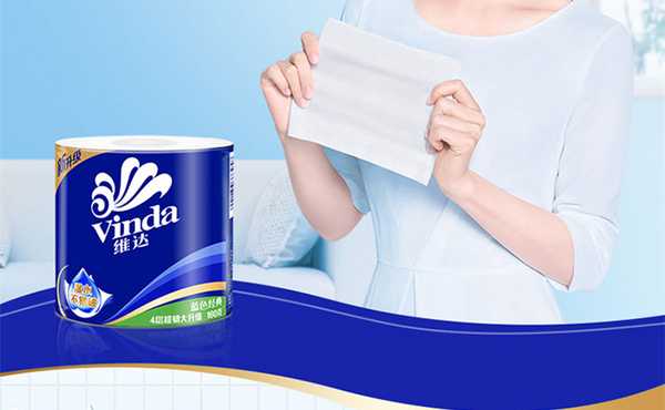 Vinda维达是维达国际控股有限公司旗下知名卫生用纸品牌,1985年成立,产品有高级卫生原纸、盘纸、纸巾、餐巾、盒装面巾、软包抽取式面巾、湿巾、卫生卷纸等。蓝色经典系列是他家的当家产品,采用100%原生木浆,升级超韧4层,独特长短纤配比,克重高达200g,差不多是最厚实的卷纸,纸质柔韧厚实,湿水不易破。