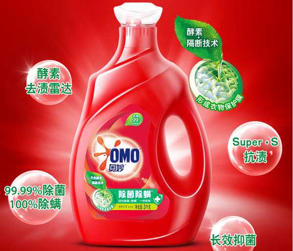 奥妙品牌成立于1890年,是联合利华中国旗下的第一大家庭护理品牌,旗下的洗衣液凭借丰富的产品型号和优异的质量,在市场上获得了不错的销量。这款奥妙洗衣液是带功能性的一款洗衣液,主打除菌除螨,它含有的天然双重酵素可以深层去污,去除四大细菌和虫螨,99%除菌,100%除蟎,洗后24小时内保证抑制细菌滋生,肌肤不再瘙痒过敏。洗衣液还添加了无磷抗硬水软化剂,任何水质均适用,PH中性,适用与棉、麻、丝、毛等各种质地。另外还加入了桉树和艾草精华,洗完味道也很好闻,还是非常好用的。