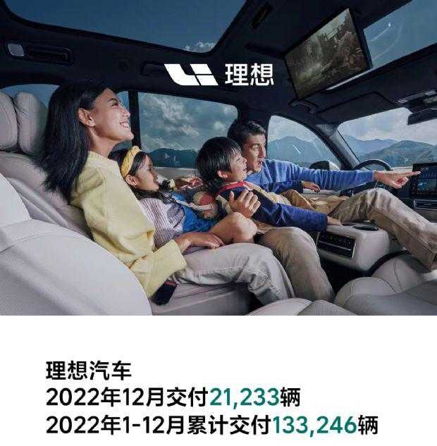 1月1日,理想汽车官方公布了12月新车交付数据。数据显示,理想汽车2022年1-12月累计交付133,246辆新车,同比增长47.2%。自上市至2022年底,理想汽车历史累计交付量为257,334辆。