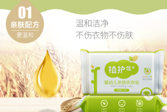 植护的这款婴儿洗衣皂配方特别天然,能够温和洁净衣物,蛋白酶还可以去除衣物上的异味。