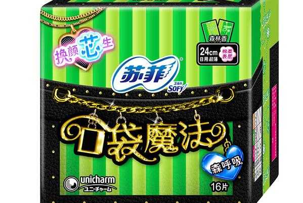 苏菲它也是源于日本的品牌,它比较受欢迎的有口袋魔法系列,售价平均下来也是一块多一片,而且还有淡淡的香气,可以掩盖姨妈期产生的尴尬气味。