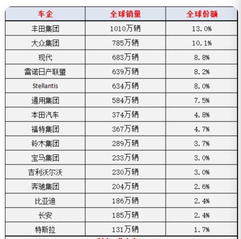 2022年的全球汽车集团销量榜单的排名跟你心中预测的怎么样呢?