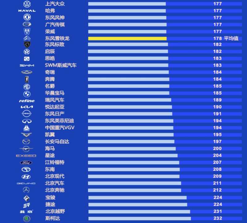 最后,坦克汽车、开瑞汽车、雪佛兰汽车、魏牌汽车和长安林肯也是表现不错,坦克品牌主打中高端SUV市场,“复古”风格比较豪放。而上汽大众、哈弗汽车、广汽传祺和荣威汽车也都是质量达标,东风标致、斯威汽车、奇瑞汽车、名爵汽车和华晨宝马的排名都不理想,不过它们的质量分数都未超过190,东风日产、长安马自达、星途汽车、北京现代和北京奔驰的排名都比较靠后。